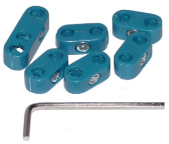 Blue plastic. Sold in sets of 6. Comes with an Allen